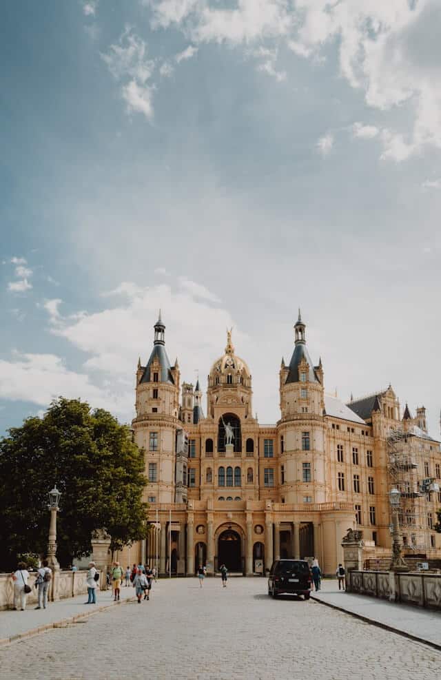 Rodeado de lagos y conectado a la ciudad por puentes, el Castillo de Schwerin parece flotar sobre el agua, como dándole un marco mágico. Hoy funciona como sede del parlamento regional, aunque su historia se remonta al siglo X, cuando en la isla existía una fortaleza eslava. Durante siglos, fue la residencia de los duques y grandes duques de Mecklemburgo. A diferencia de los castillos bávaros clásicos, la remodelación que sufrió en el siglo XIX le dio las influencias del romanticismo, combinando elementos del gótico, renacimiento y barroco, en una mezcla muy característica del norte de Alemania. Dentro del castillo se ofrecen recorridos con audioguías apta para toda la familia. También hay salas donde los niños pueden vestirse como príncipes y princesas, y exposiciones interactivas pensadas para los peques. En verano se organizan talleres, juegos y espectáculos para toda la familia, convirtiéndolo en una parada especialmente recomendable para quienes viajan con chicos. Es uno de los Castillos en Alemania favoritos entre las familias.